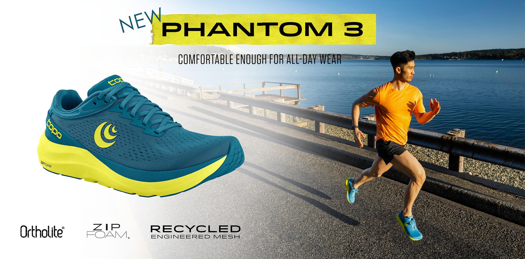 Topo Phantom 3 : รองเท้าวิ่งสายซัพพอร์ต ที่ให้ฟิลลิ่งนุ่ม แน่น เหมาะสำหรับใส่วิ่ง Long run วิ่ง easy ในขณะเดียวกันก็ตอบสนองต่อก้าววิ่งได้ดี และแน่นอนว่าหน้าเท้ากว้างสบาย