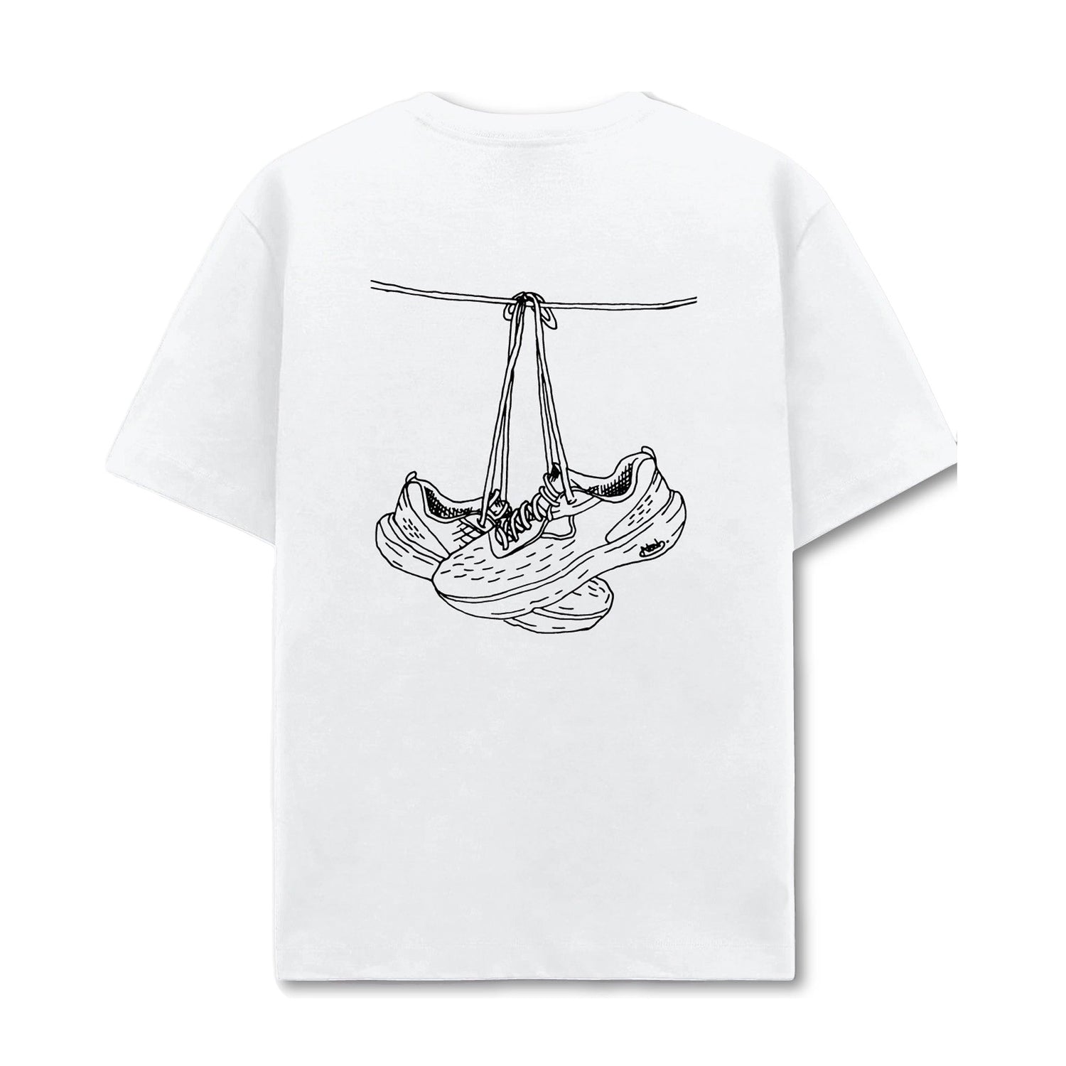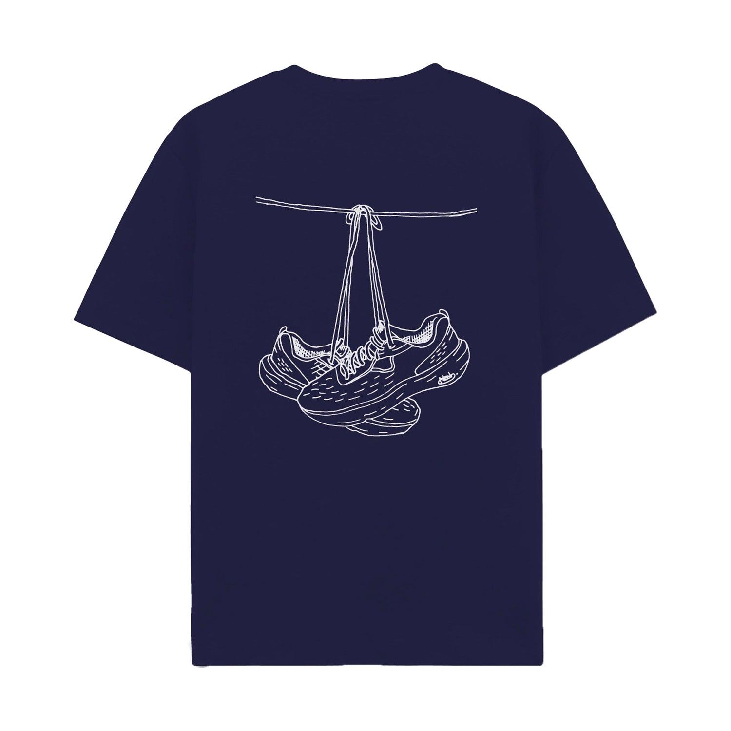 เสื้อยืดตัวนี้ออกแบบโดยศิลปินชาวอังกฤษ Noah Francis ได้แรงบันดาลใจมาจากการวิ่งข้ามประเทศไทยระยะทาง 2,100 กิโลเมตรของ Chris ด้วยรองเท้าคู่เดียว ภาพวาดลายเส้นแบบมินิมอลสะท้อนทั้งความเรียบง่ายของการวิ่งและเรื่องราวความประทับใจที่ได้การเดินทางครั้งนี้